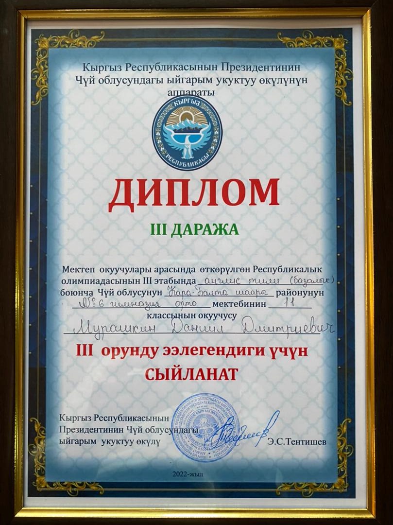 Дипломы победителей и призеров III этапа Республиканской олимпиады школьников