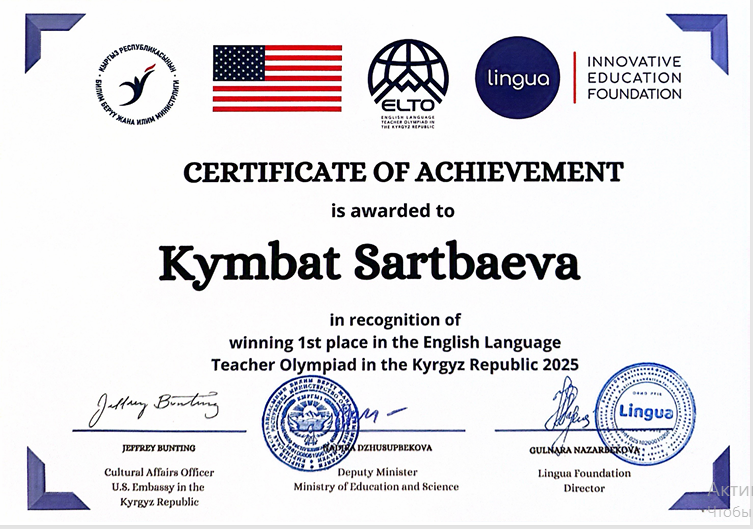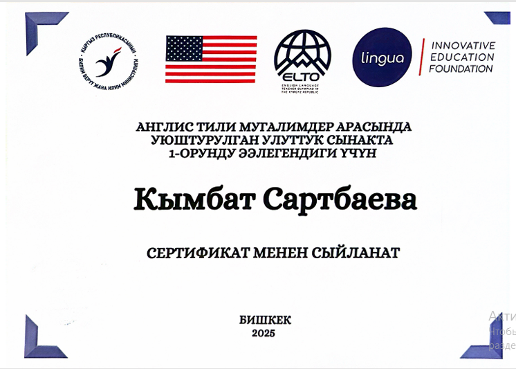 Победитель национальной олимпиады по английскому языку Сартбаева Кыбтат Туратовна
