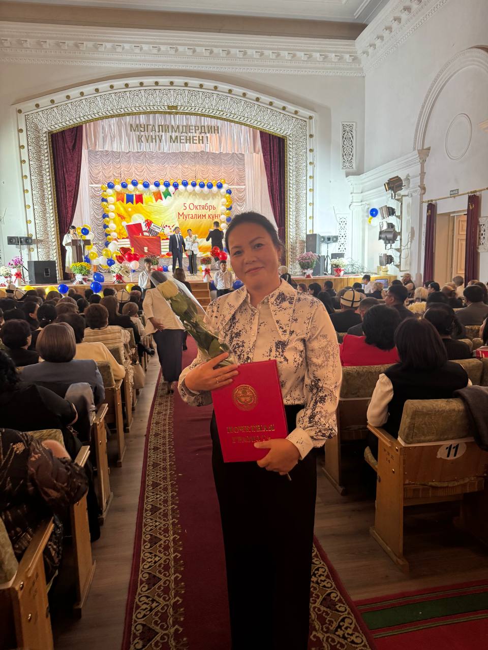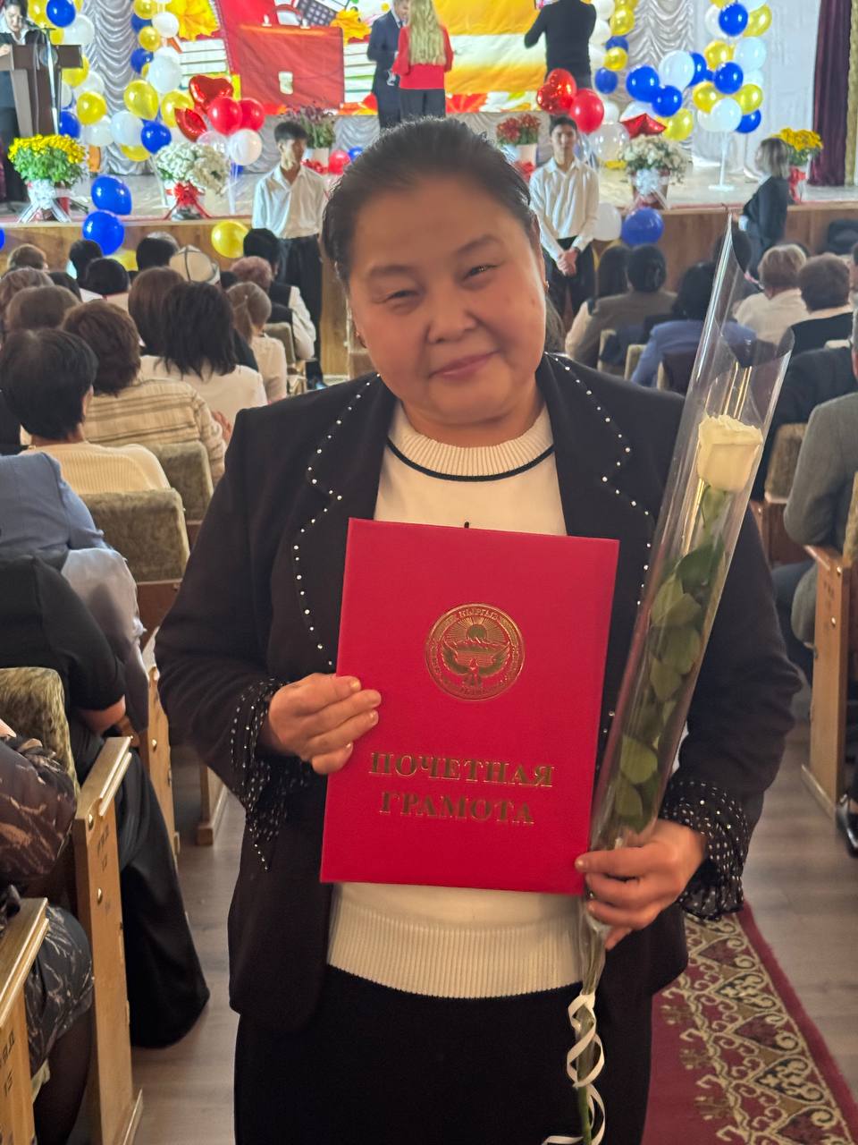 Аильчинова Айжан Ийсаевна, учитель кыргызского языка награждена грамотой мэрии г. Кара-Балта
