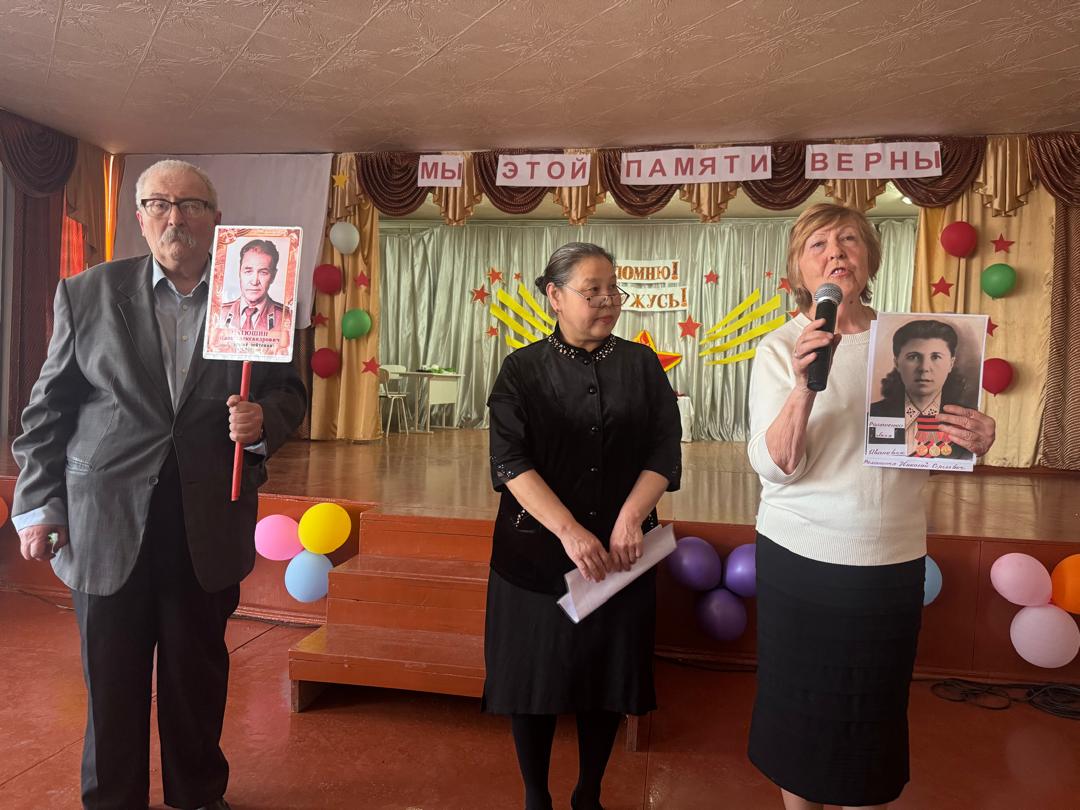 Педагоги школы Беляева Л.Н., Матюшин В.И., Кадыралиева А. М. рассказали о своих отцах и матерях, кто был очевидцем и участником войны. Эти рассказы еще раз доказывают, что память человеческая жива и бережно хранится в каждой семье.