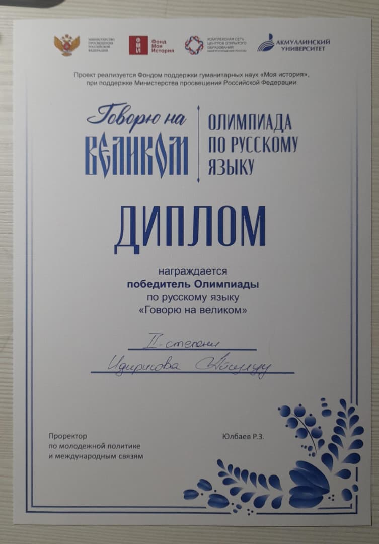 Поздравляем призеров Олимпиады по русскому языку для граждан Кыргызской Республики «Говорю на великом».