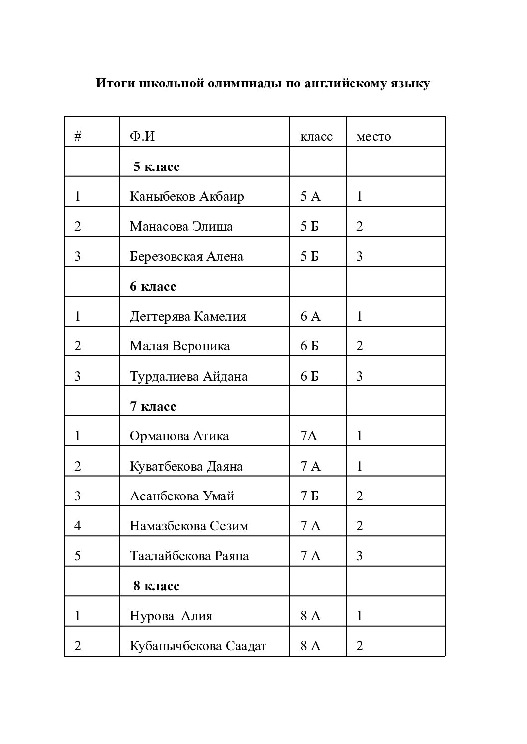 3 | Акмолдоева Айсулуу | 8 А | 3 |